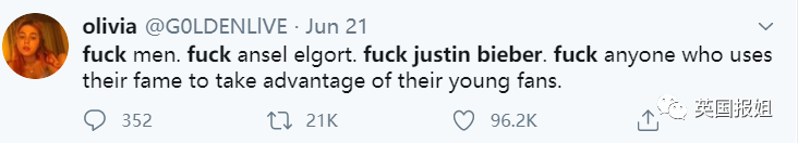 前些日子,好莱坞新晋男神Ansel Elgort被人曝出性侵未成年粉丝(戳这里复习),粉丝Gabby晒出了2014年的聊天记录和合照指控Ansel,随后还有多个粉丝辅证,自己遭遇了相同的事情。