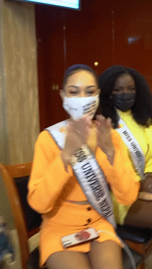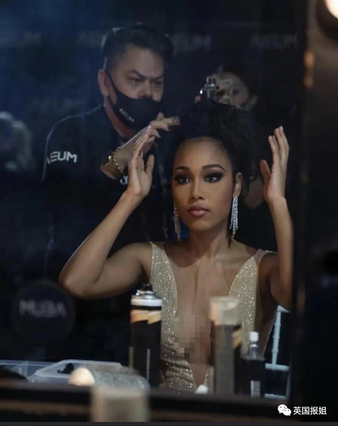 巴哈马的香特尔Chantel O'Brian,网上流传着这样一张她帮菲律宾小姐调整造型的照片,这是在环球小姐加冕之夜的后台拍下的。