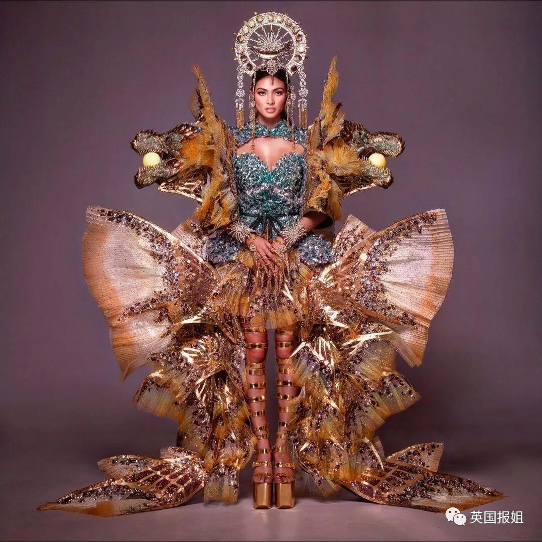 不过她最震撼的还是在民族服装的部分,繁复华丽的造型令人印象相当深刻。