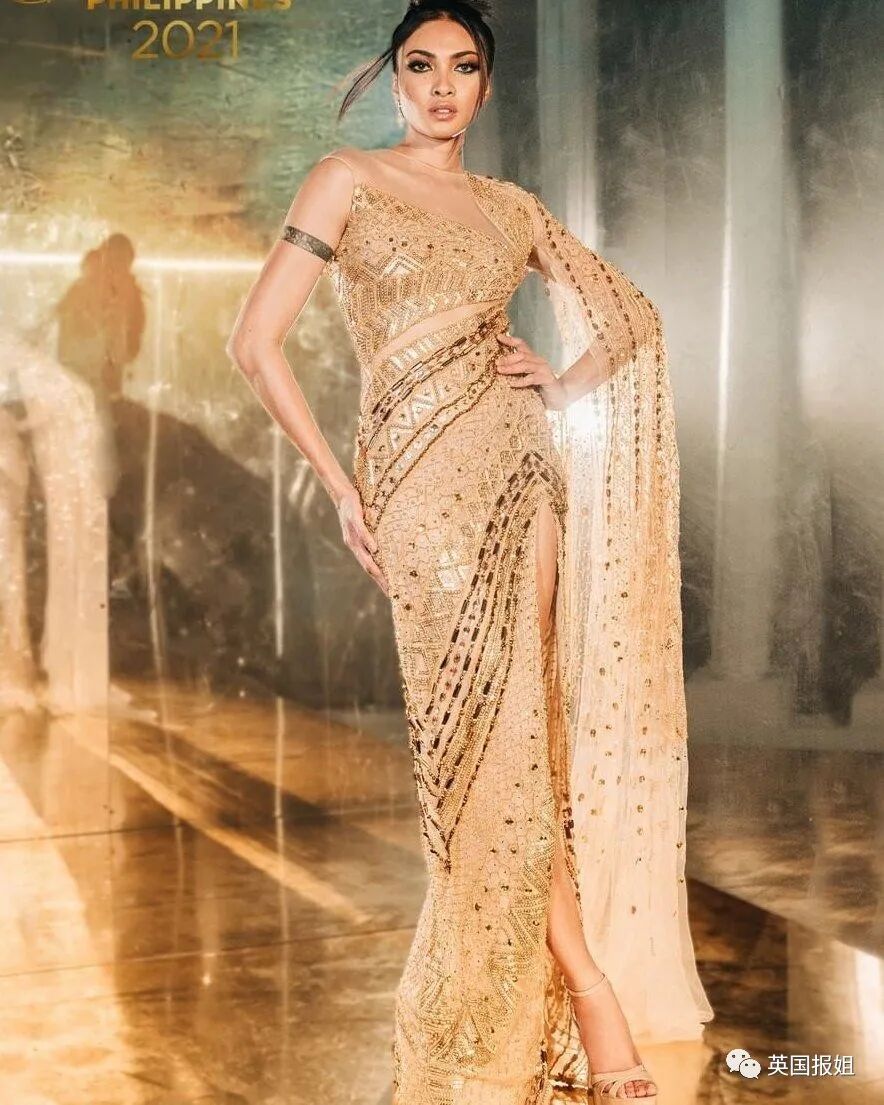菲律宾的碧翠丝,把金色长裙穿出了无限风情。