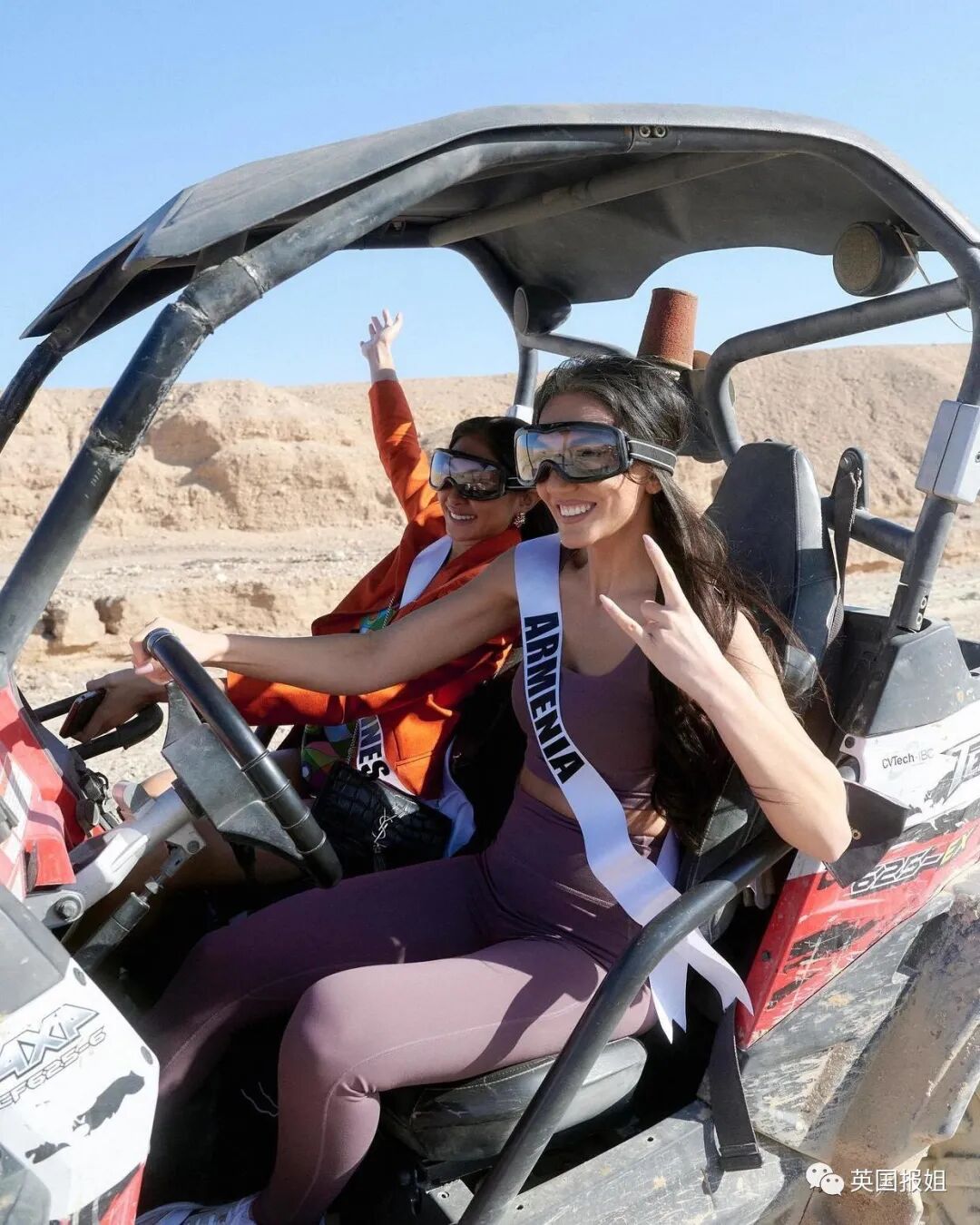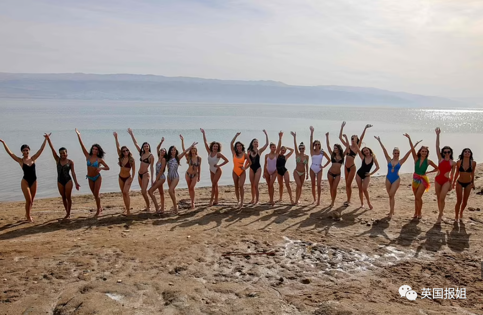 以上这些比赛时拍下的“标准照”,看多了大家难免会觉得呆板,那可以看看选美皇后们在死海边游玩一天的“生活照”。