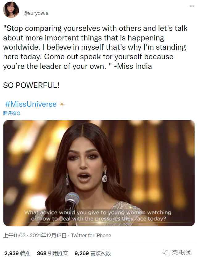 2021年环球小姐选美大赛刚刚落下帷幕,21岁的印度演员、模特哈纳兹Harnaaz Sandhu赢得了桂冠!