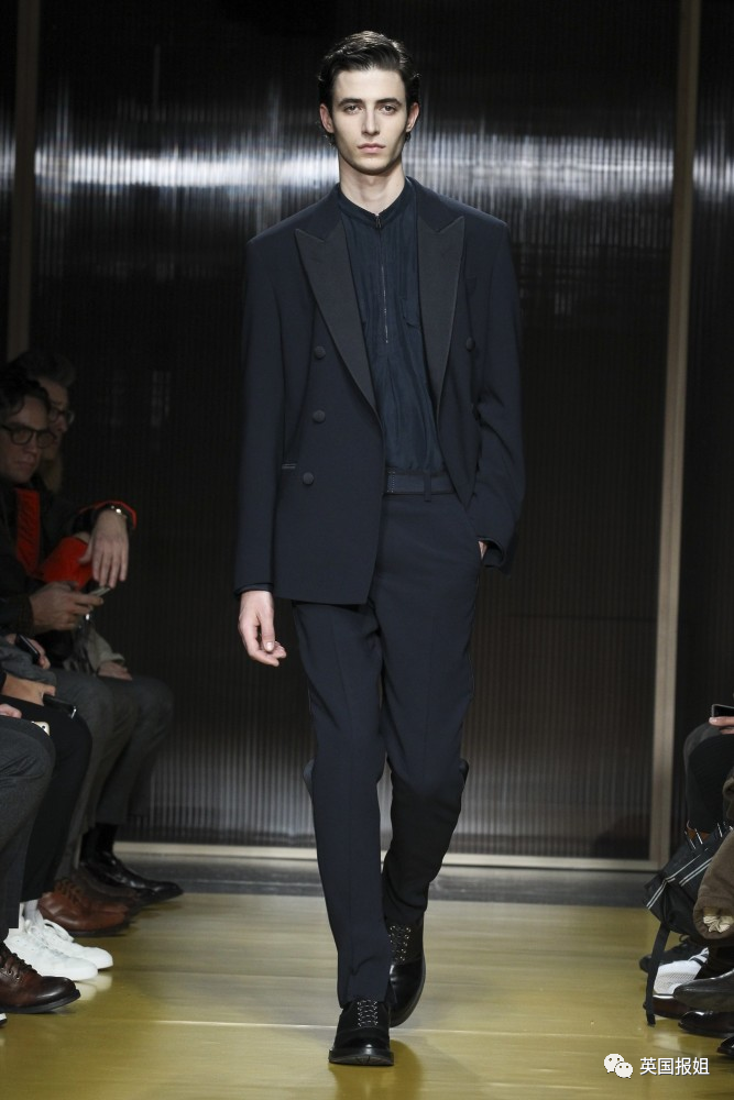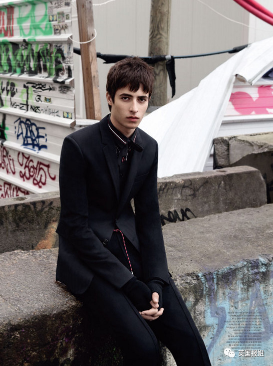 Dior homme很快也发现了奥斯卡这根好苗子,向他抛出橄榄枝。这时候离Prada惊人一秀已过去一年,他早不再染着显眼的银发,而是将头发换回了较暗的颜色,造型稍微有些古板但也抵挡不住帅气。