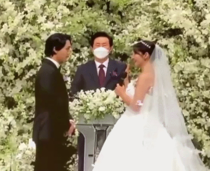 比如穿着洁白婚纱的信惠,和新郎崔泰俊在台上最重要的宣誓。