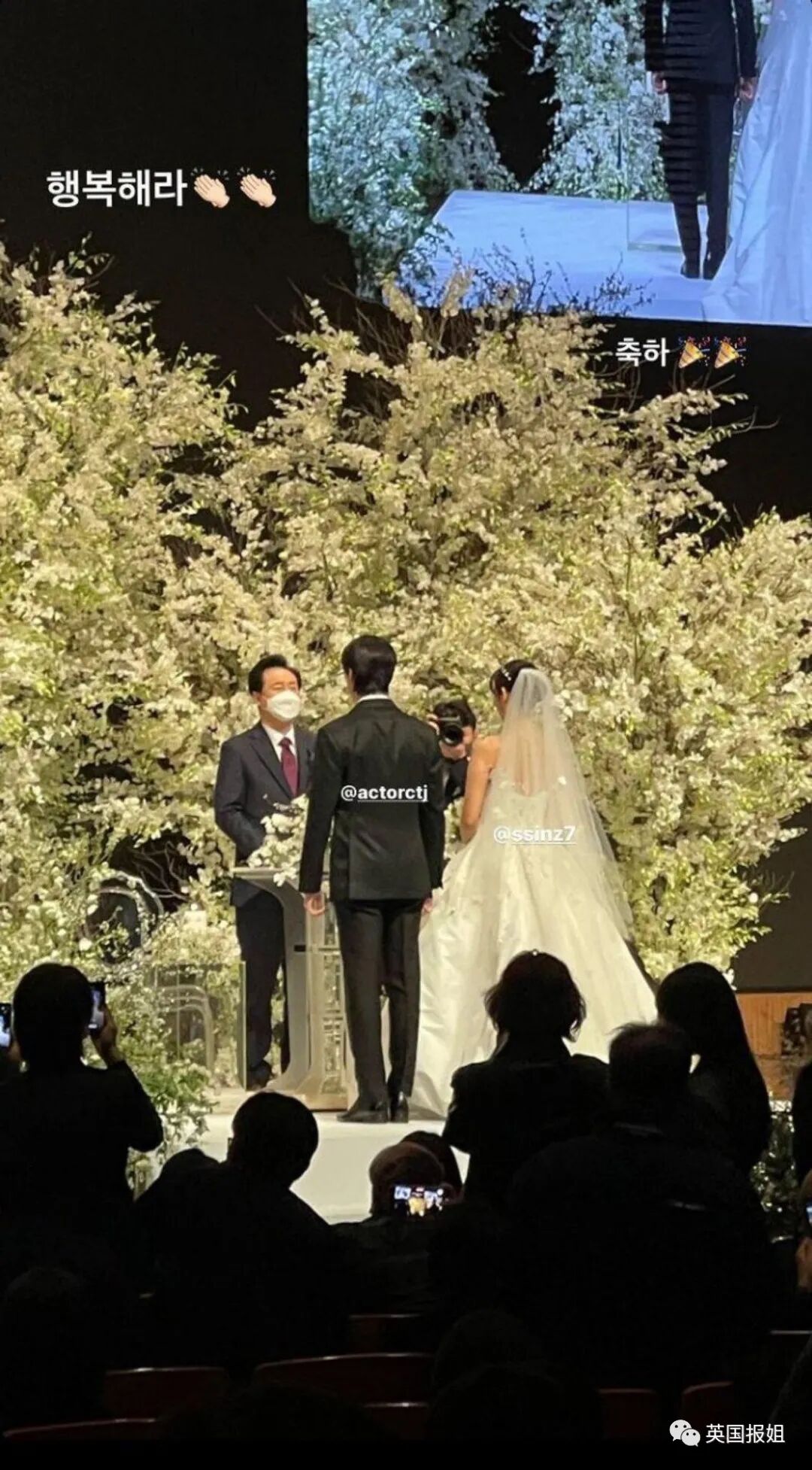 宛如韩剧拍摄现场的婚礼,众多大牌明星见证,网友们都开玩笑说,“能不能请我去参加婚礼?”