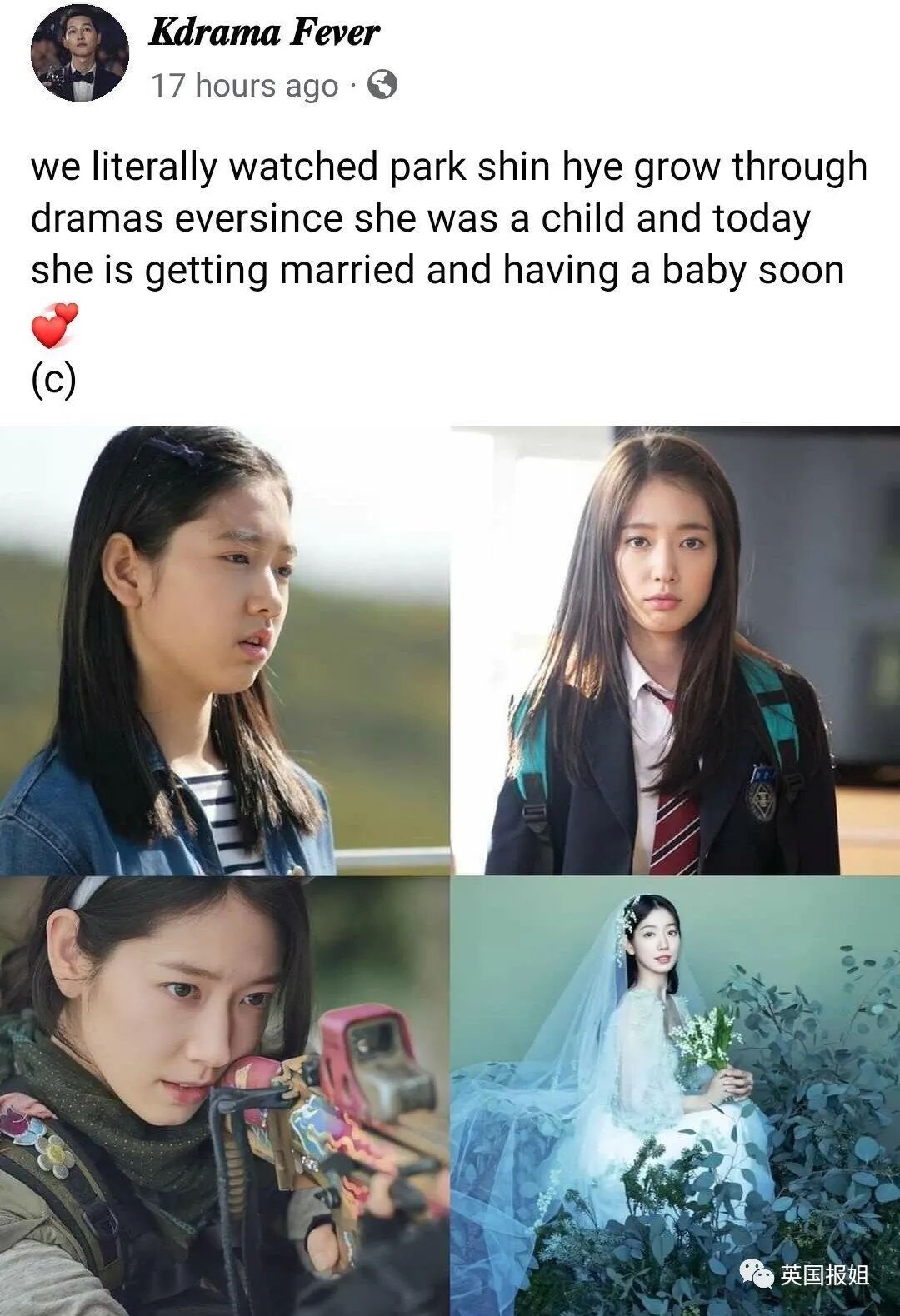 看着从童星到一部部偶像剧女主的朴信惠走入婚姻殿堂,不久后还将会迎来宝宝,这种“爷青结”的感觉就更强烈了。