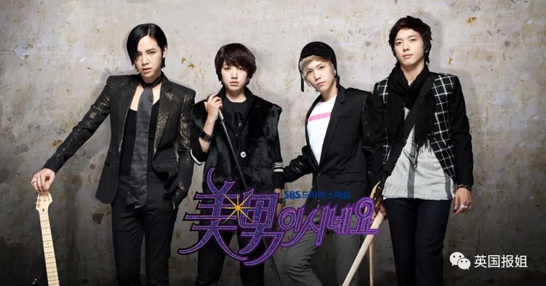 如果还有不太熟悉《美男》剧情的小伙伴,朴信惠在剧中是女扮男装的女主高美男,代替哥哥进入了一个人气男团,其中男团成员包括主唱黄泰京(张根硕饰演)、贝斯姜新禹(郑容和饰演)和鼓手Jeremy(李洪基饰演)。