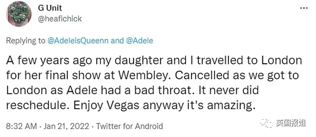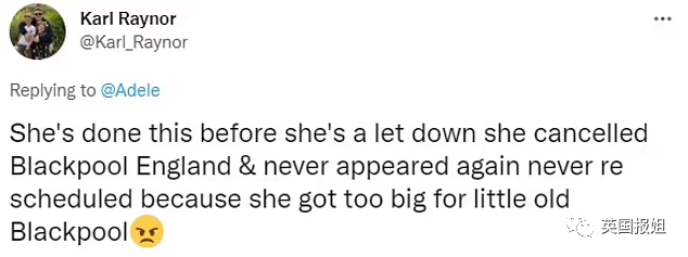 虽然在推特下方,仍然有不少人支持阿黛尔,但是对于已经购票的粉丝来说,这简直是如同晴天霹雳。
