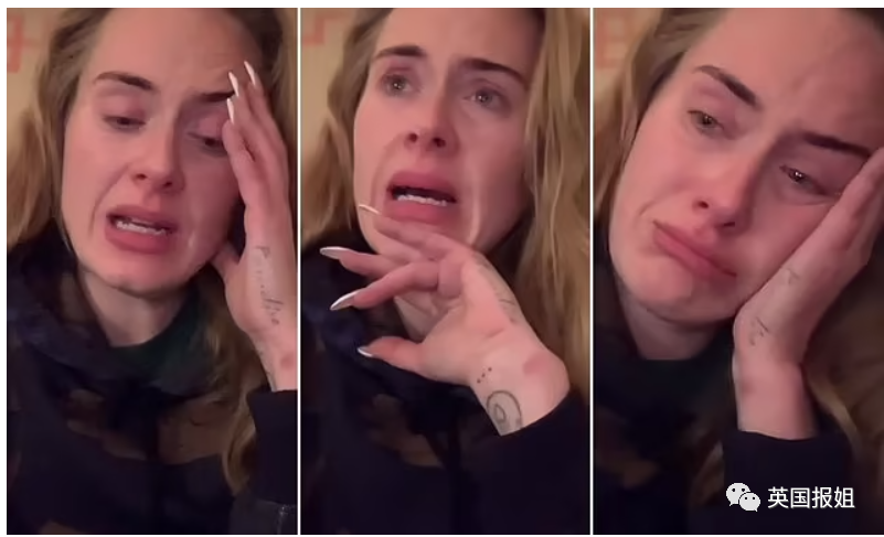 然而最终,粉丝们等到的,是一段阿黛尔哭泣的视频。