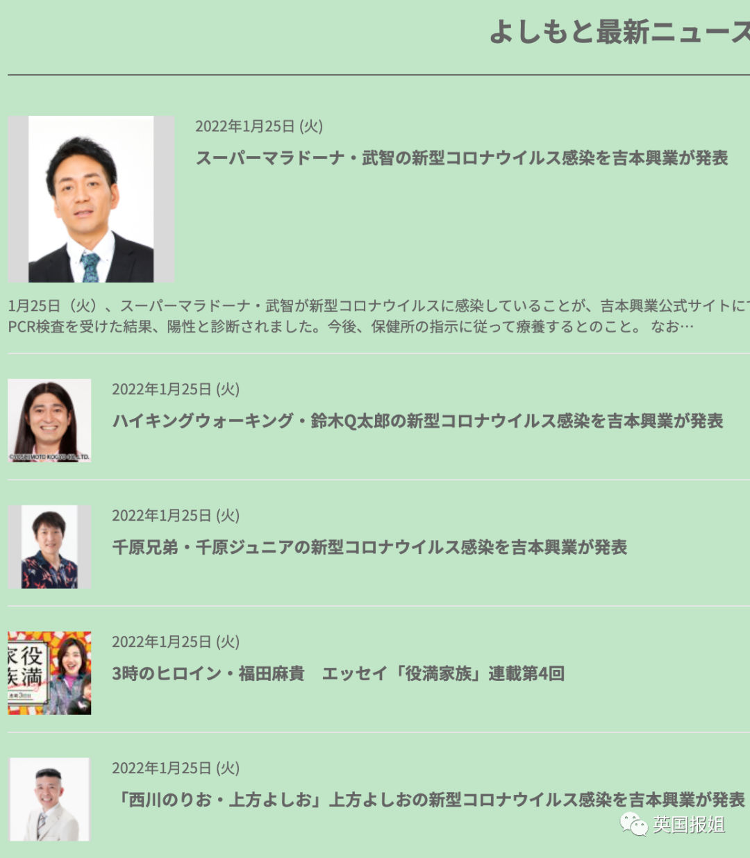 直到今天,事务所的艺人确诊公告还在不断放出,吉本的官网几乎被“新冠”二字覆盖了...