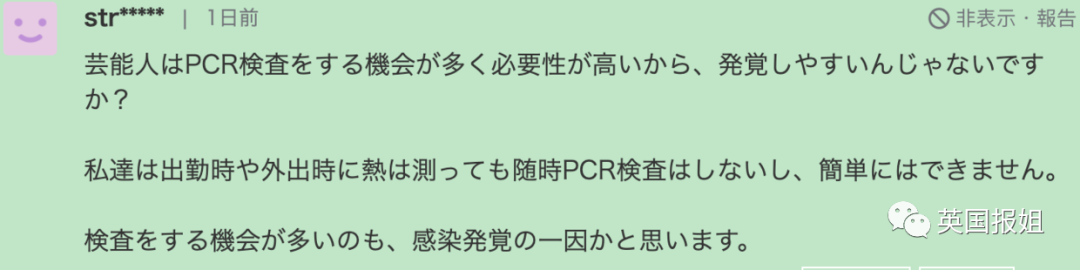 毕竟艺人也是日本疫情的一个窗口,一名网友表示:“明星们确诊很多,是因为他们能很容易就能接受核酸检测不是吗?我们这些上班族,就算在路上或者外出时发烧,也不太可能随时做到核酸检测。”