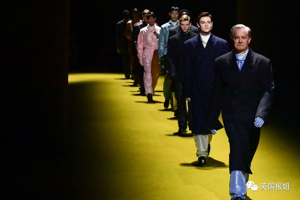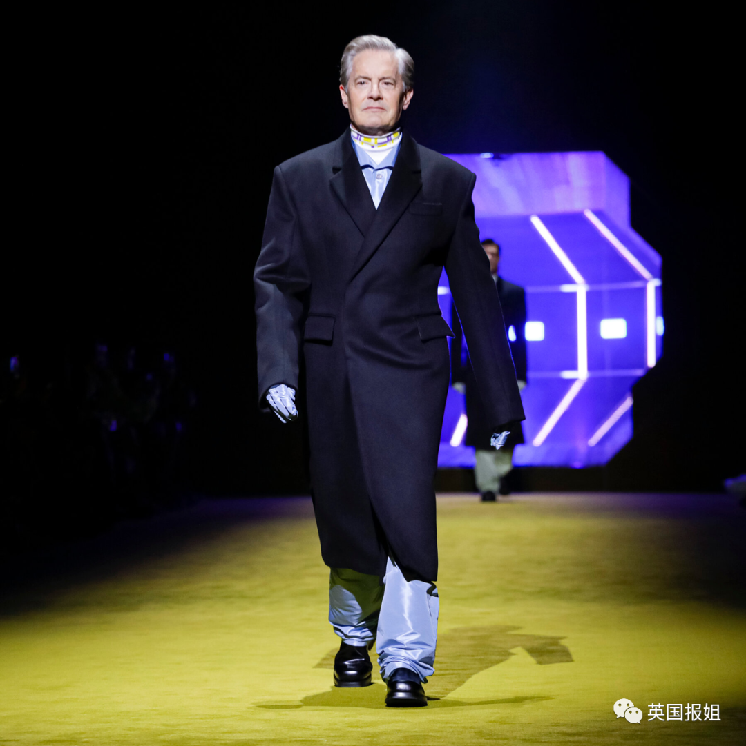 现在62岁的他已经头发花白,但作为大秀的开场模特,一出场就hold住了气势