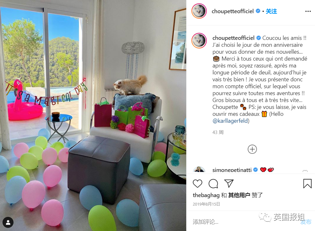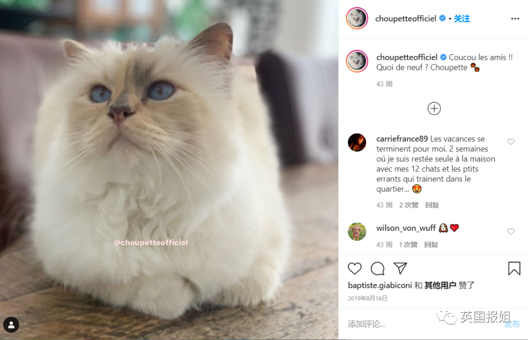 原先的账号,名为“舒佩特日记”:@choupettesdiary