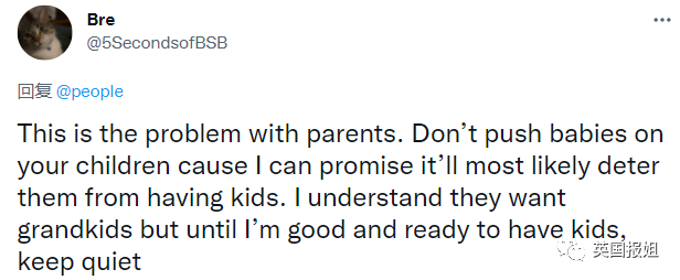 我理解父母们想要孙辈,但在孩子自己准备好要生之前,还是闭嘴吧。”