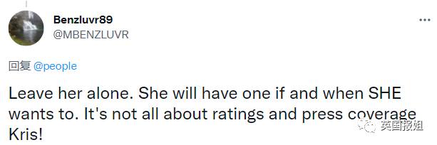 “放过她吧。她想生的时候自然会生。不是所有事都和收视率、媒体报道挂钩的,Kris!”