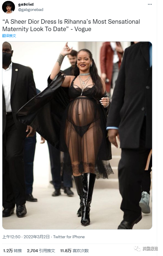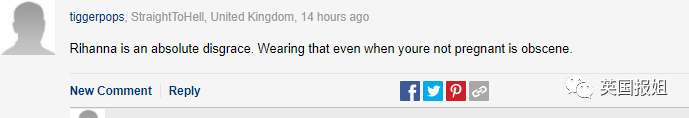“蕾哈娜简直就是耻辱。就算你没有怀孕,穿这样的衣服外出也很下流啊。”