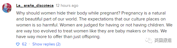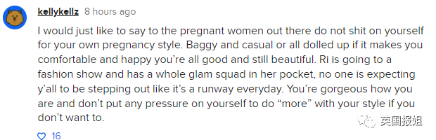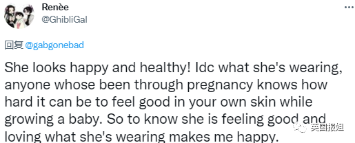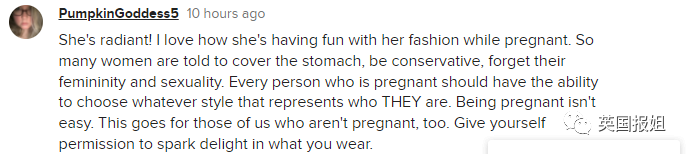 另外还有一些网友表示,孕妇也能拥有她们喜欢的时尚,可以穿她们喜欢的衣服,不一定非得符合传统形象,总是套着松松垮垮的衣服。