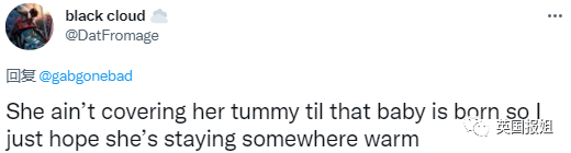“孩子出生之前她应该都不会把肚子盖起来了,那我就希望她能待在暖和一点的地方吧。”