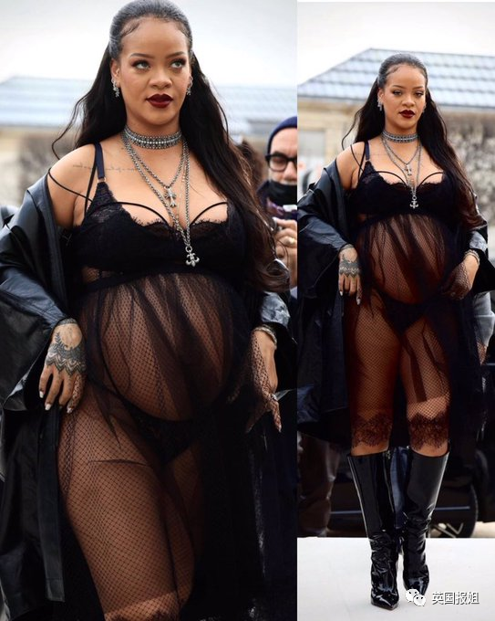 本周二,蕾哈娜再次突破时尚界限,穿着她目前为止最性感的孕妇装现身巴黎时装周看秀。