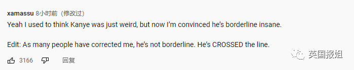 更正:很多人纠正了我的说法,他不是差一点点才疯,他是疯过头了。”