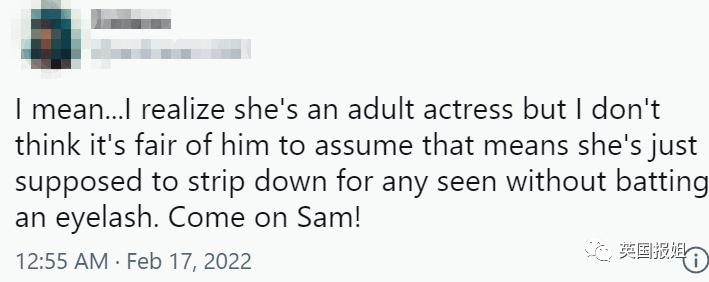 “就在这一季,有3位女演员表明Sam要求了过多的裸体,让他们感到不舒服,那什么时候才会有人来管管他呢?