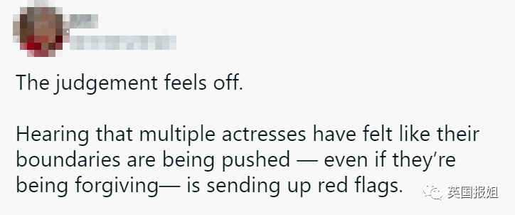 但试想一下,如果演员不敢主动提出意见,导演这种先斩后奏的行为就很有强迫性了。网友认为,不在前期说明角色的情况,先“骗”到演员,再塞给他们远高于他们预期的大尺度镜头,试探他们的底线,实在不合适。