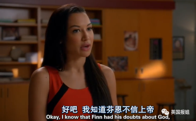 命运难料,7年后Cory的忌日,宣布了Naya的死亡。剧中的那个常假装坚强的女孩说“虽然finn不信上帝,但我相信这个傻小子已经上了天堂。”