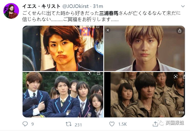 “从出演《极道鲜师》时就一直喜欢的三浦春马死了,仍不敢相信…愿你安息。”