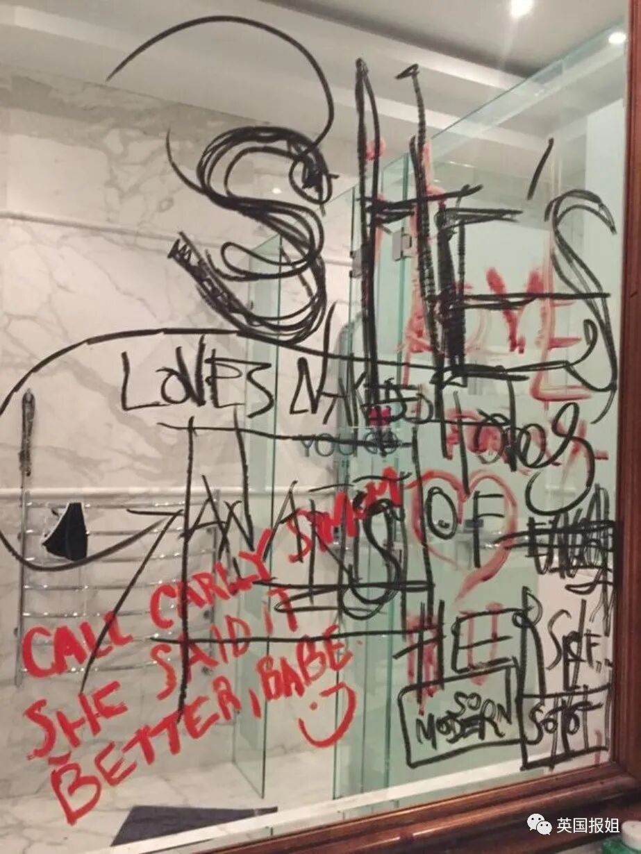 随后,德普还用受伤的手指,用血和颜料的混合物在房间里乱涂乱画,写下了"比利鲍勃"和"Easy艾梅伯"的字样。