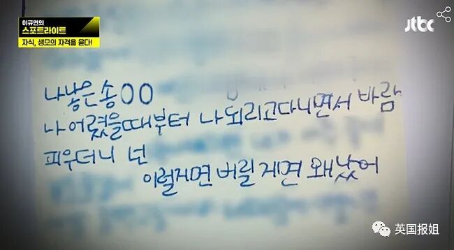 而前段时间,韩媒在节目中公布了具荷拉的日记片段,其中出现了“带着我出去和别人外遇”、“如果要抛下我为何又要生下我”的话语,在这之中也看到具荷拉写着自己有多么想念妈妈,又是如何在思念中苦苦忍耐着。
