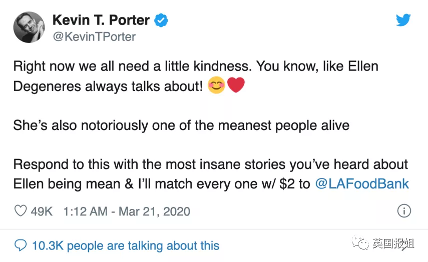 而作为美国电视界收入最高的明星,身价23亿、一直宣传要“Be Kind”的艾伦,却不管不顾、没有沟通直接降薪?