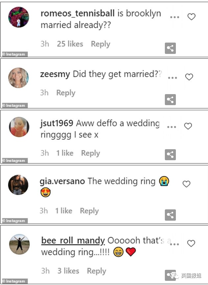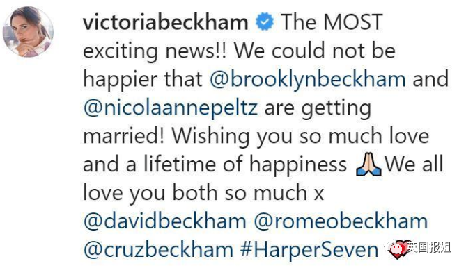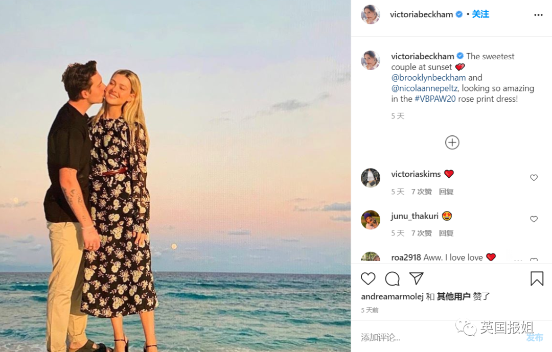 还有布鲁克林的朋友在他发的妮可拉照片下,将她称为“贝克汉姆太太”。