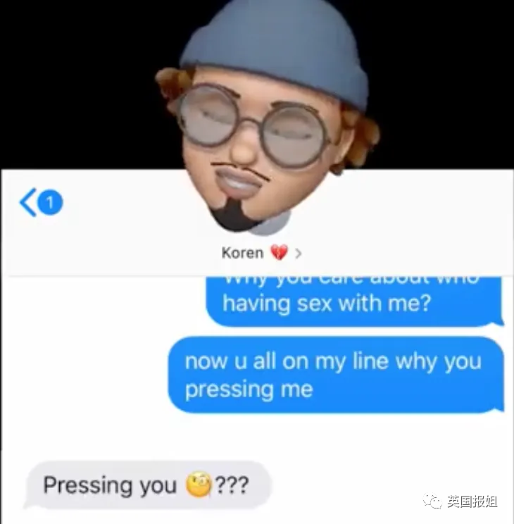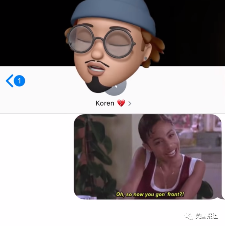 然后就有人发现,August去年法国一首叫《Nunya》的歌,歌曲MV是模拟了August与一名叫做“Koren”的女子的短信对话,中间出现了Jada的表情包。