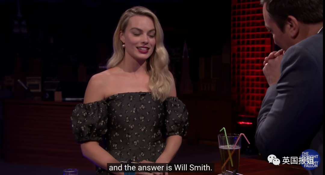 节目上玩喝酒游戏,看问题说答案,如果不想透露问题就喝酒,罗比说答案是will然后喝了酒