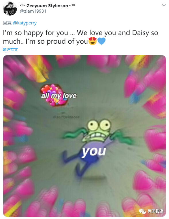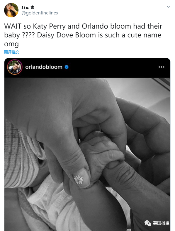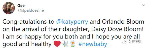 “卧槽!水果姐和开花的孩子出生了???Daisy Dove Bloom这个名字也太可爱了吧天哪”