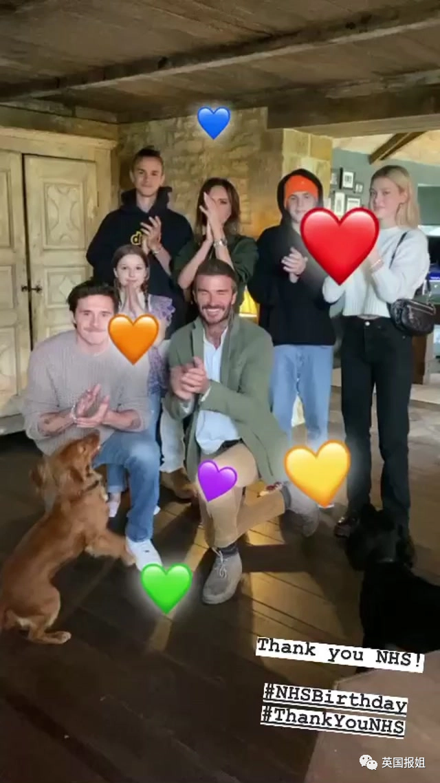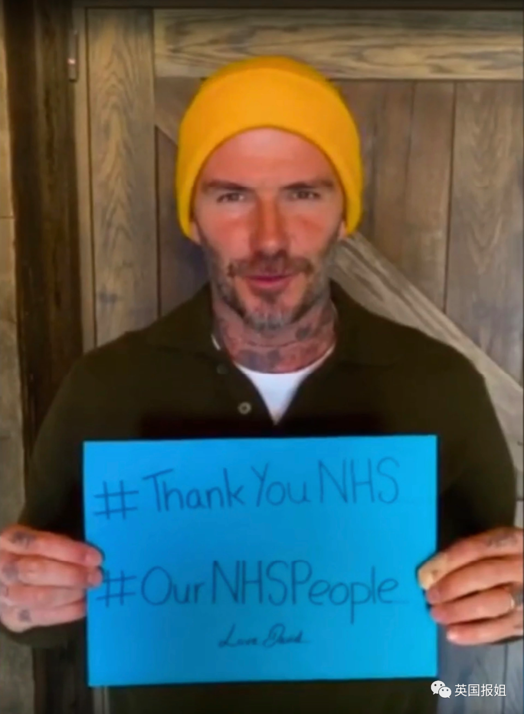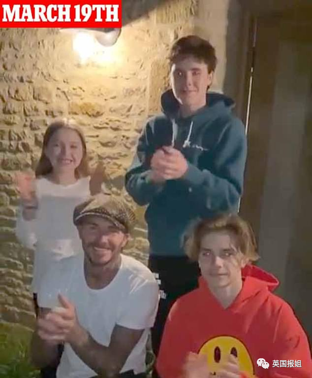 后来英国开始进入封锁期,贝克汉姆一家又积极参与了为医务人员鼓掌、每周一次保护老人活动等等项目,转发女王抗疫视频,赞扬医务工作者,一个都不少。