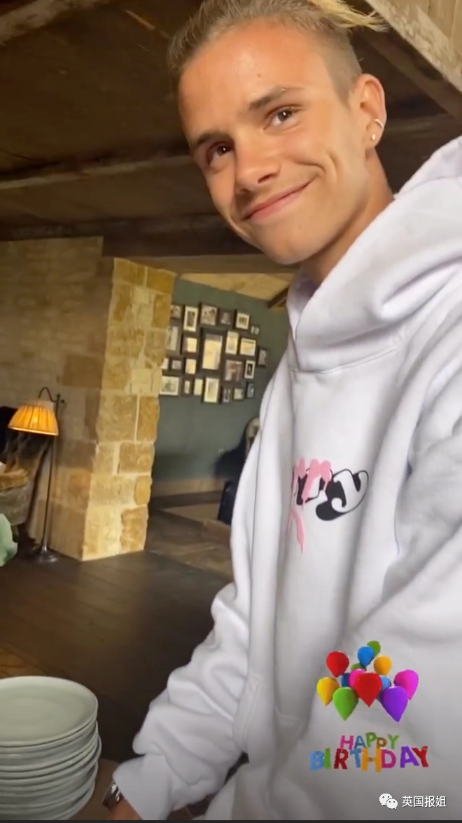 还有个更有意思的事,就在上个星期。9月1日是二儿子罗密欧的18岁生日。这会儿英国已经放开社交政策了,餐饮业等娱乐行业都开始恢复正轨,大家就想看看贝克汉姆家这次又要整出什么奢华晚宴。