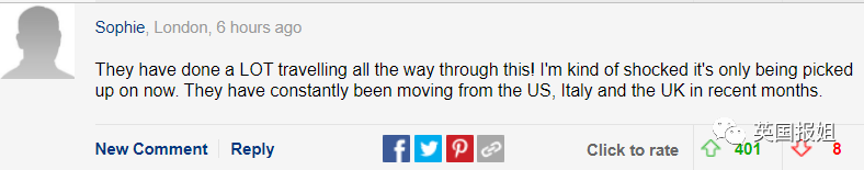 “他们疫情期间真的去了好多地方啊!!我有点震惊,这事现在才被爆出来。这几个月,他们还不断地在美国、意大利和英国之间反复横跳呢。”