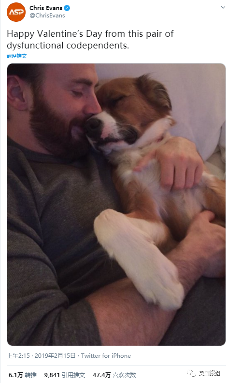 因为他真的很宠很爱狗狗,情人节那天,复联其他人可能都在秀恩爱,