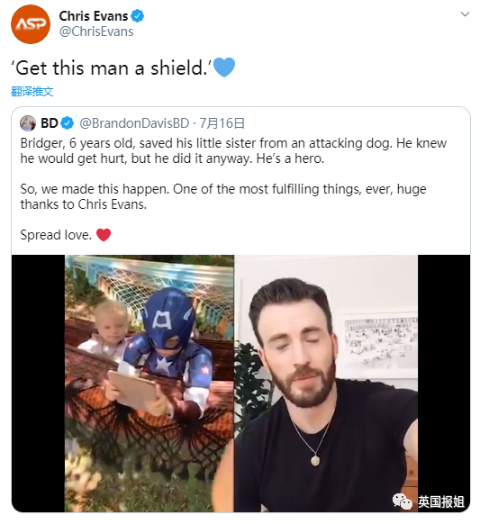 克里斯埃文斯,大家公认的“美国队长”、北美反川斗士、好莱坞爱狗先锋、正能量传播大使…