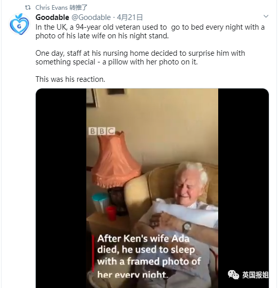 养老院员工为老爷爷准备惊喜抱枕,抱枕上有爷爷逝去妻子的画像,人间有真情,桃总激情转发。