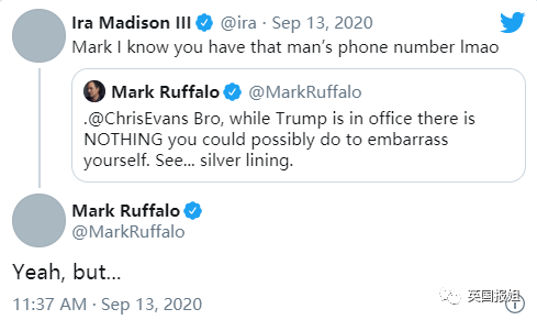 就在全网沸腾的时候,复联一级网上冲浪选手兼北美反川普斗士马克叔也赶到战场,并且直接艾特了当事人。