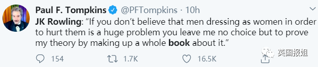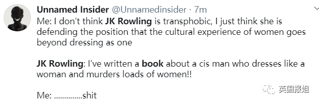“JK罗琳 :如果你不相信男人扮成女人会伤害女人这是个大问题,你让我别无选择,我只能编一本书出来证明我的理论了。”