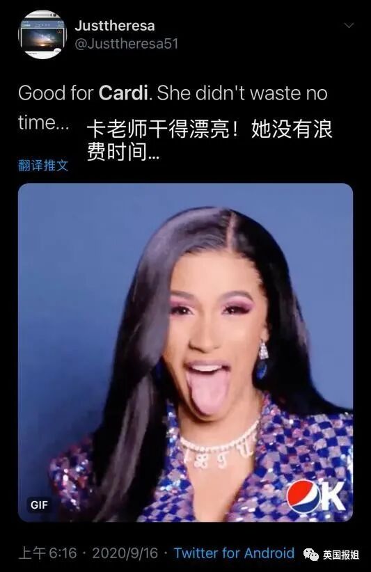 话说大家还记得“中国人民的老朋友”卡迪碧(Cardi B)老师嘛?