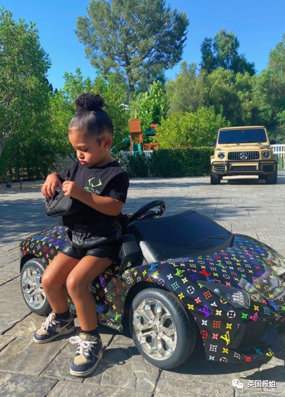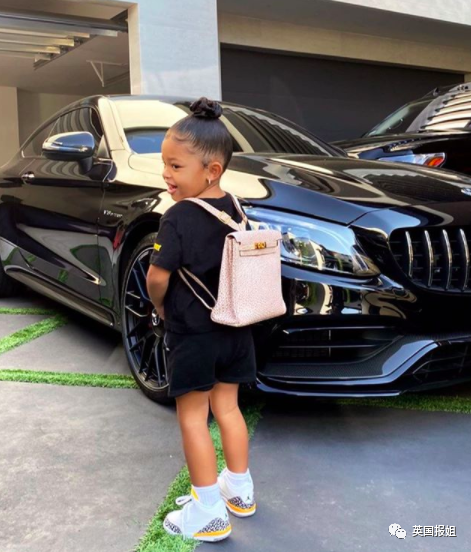 除了出行都是豪车私人飞机,玩具动辄上万美元,Stormi吃穿用的,也都是顶级。凯莉给孩子配齐了和自己的造型一样的mini版本的名牌包包和衣服鞋子。