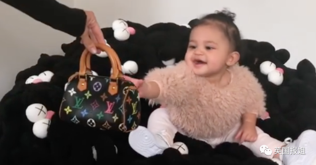 看着坐在昂贵的玩偶设计沙发上,穿着皮草,拿着LV的Stormi,吃瓜群众评论:我也想当凯莉的女儿!
