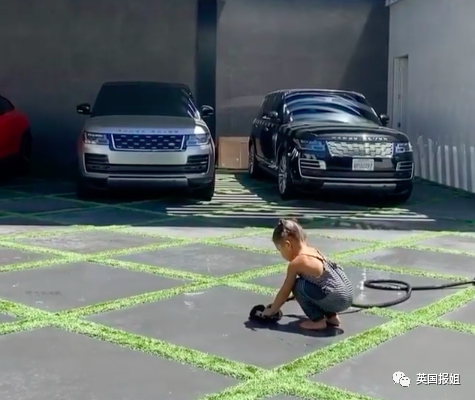 平时在家后院玩耍,背景也是路虎法拉利车坐镇。