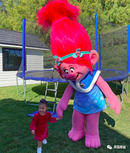 孩子的周岁生日兴师动众也就算了,凯莉因为女儿喜欢魔发精灵,愣是给孩子请来了大型玩偶表演。