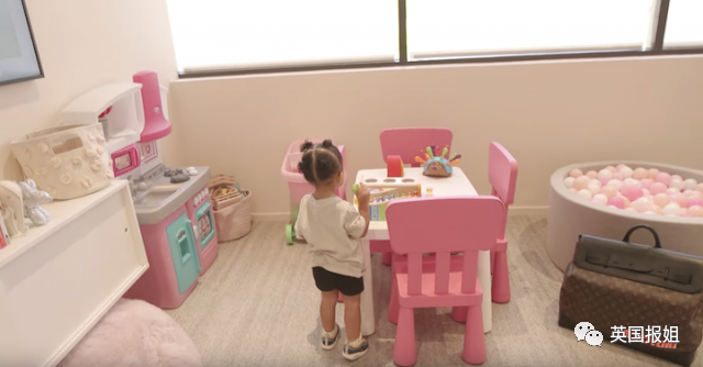 凯莉在自己的公司办公室,专为女儿设计了一整套多功能房间。Stormi不仅可以在房间里睡觉休息,还可以在妈妈为她准备的游戏房玩耍打发时间。