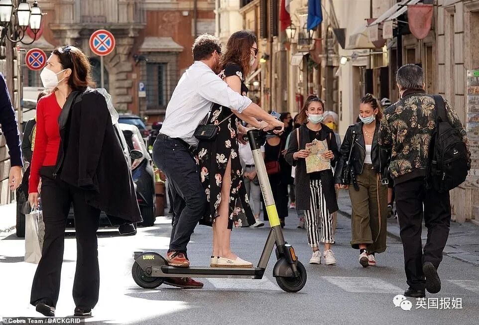 两个人正在罗马一起拍戏,不过被狗仔拍下来的一整天浪漫亲昵可不是戏里的内容,因为他们拍的是年代戏,狗仔照片里他们也没穿戏服。